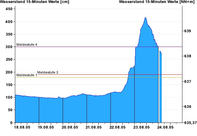 240 cm um 11 Uhr = Pegelhöchststand