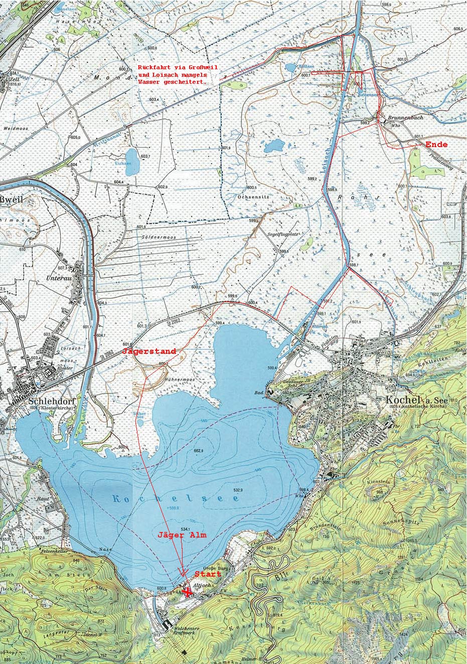 bis Schlehdorf benötigte der Hochwasserscheitel rund 10 Stunden.Zirka