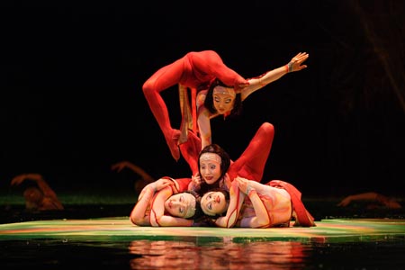 Endlich seh ich auch die Piratenshow vorm TI - so ein Käs! Weißes Schiff mit leichtgeschürzten Sirenen erwartet tanzend Käptn Mac's schwarzes Piratenschiff mit blutrote Segeln und Kuhhörnern am Bug: "Ok girls be weaponned with lipstick powder highheels!"