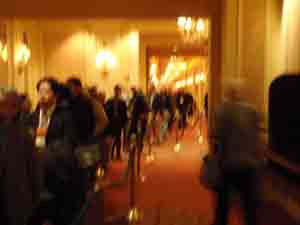 14:00 Samsung PK im Casanova Ballroom. Die Line zieht sich um halb 2 durchs ganze Untergeschoss (362 Schritt). Mit einer kurzen Gabelung am Anfang: "No, this is the Fedex-Line; Sähmsong is the long one." Bevor ich mich da einreih, wollt ich erst mal die Länge sondieren und bin dran entlang spaziert. Ungefähr 10m vor der Ballroomtür gab's nen Schnurlauf für Staff und da traf ich die deutschen Agenturleute und drin bin ich - ein Hoch auf Shangama und Co.!